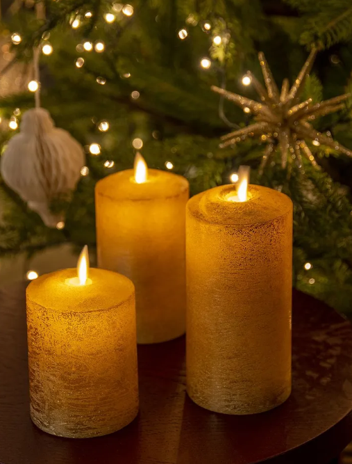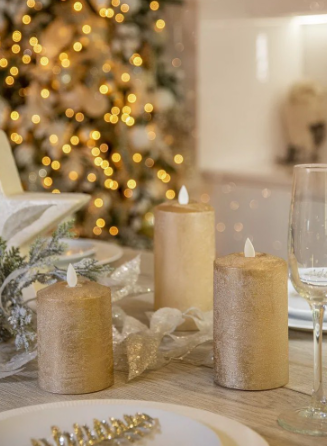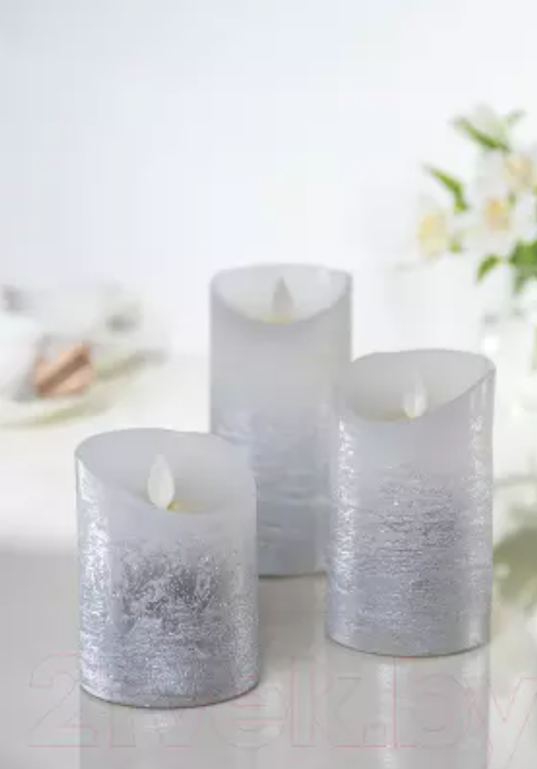 Набор из 3 свеч высотой 15 см, 12,5 см и 10 см и диаметром 7,5 см.
