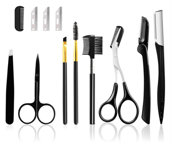 Набор из 11 профессиональных инструментов для моделирования бровей и ресниц. Это идеальный и универсальный инструмент для ухода за ними. В комплект входят ножницы, бритвы, кисточки, расческа, пинцет и дополнительные лезвия.