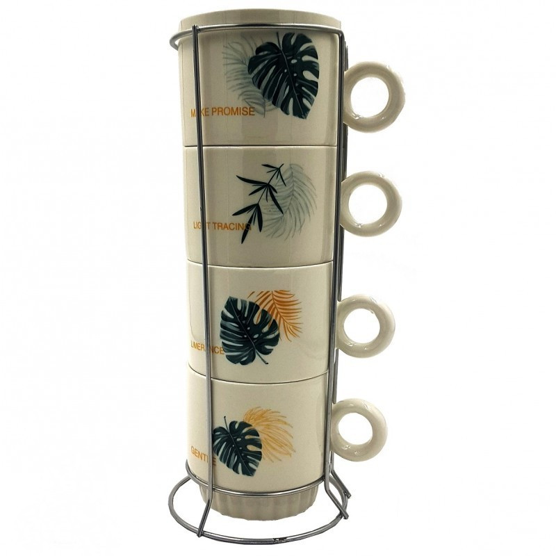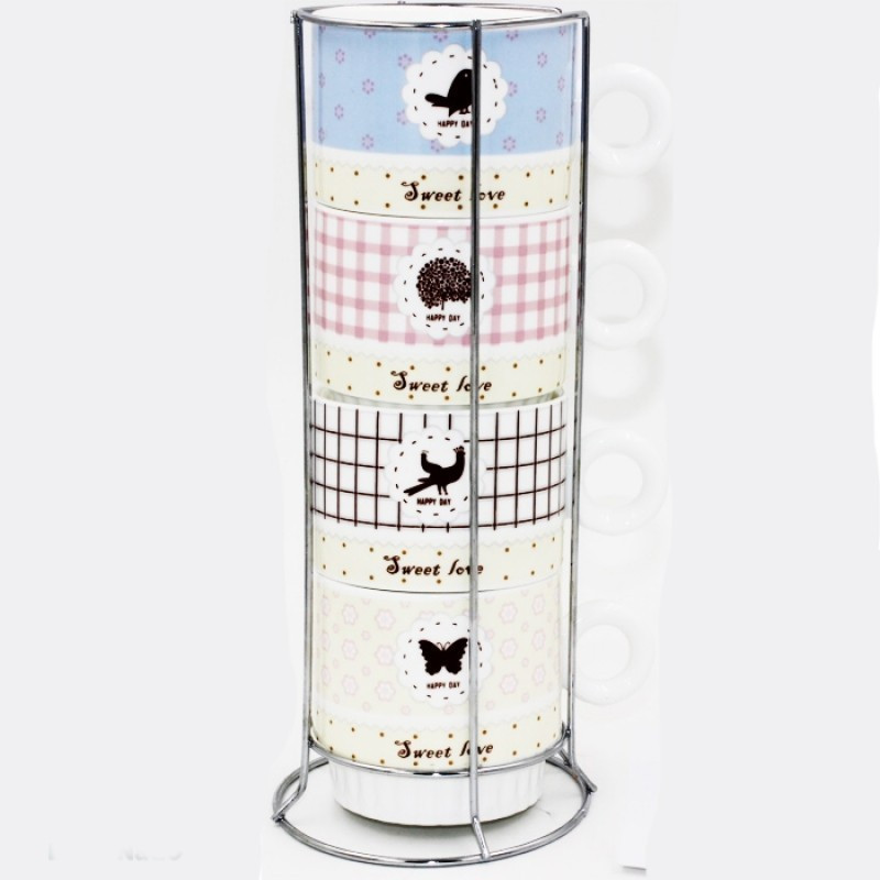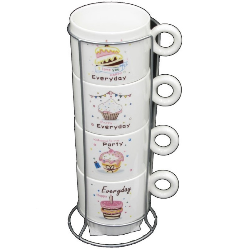 Набор из фарфоровых куржек на подставке 4 шт. 220мл Отличный подарок ,который всегда будет радовать эстетическим внешним видом.