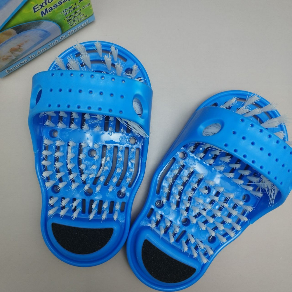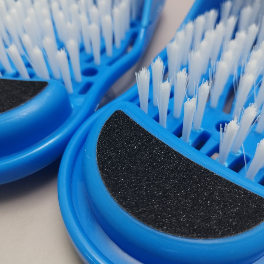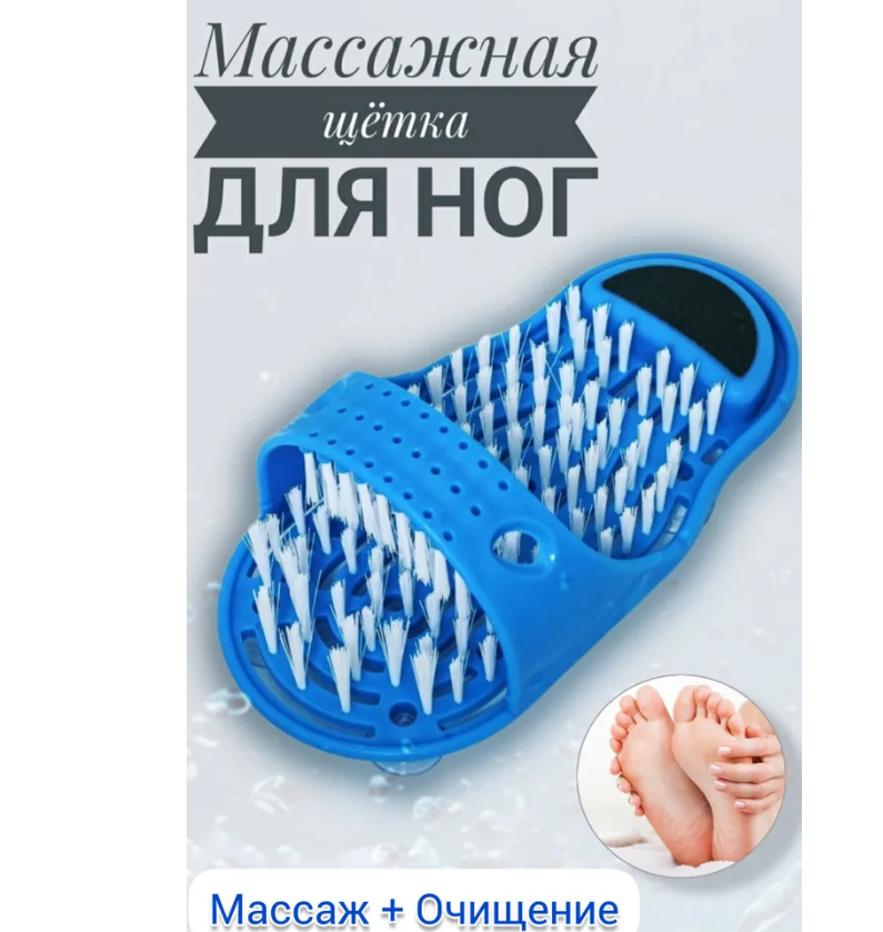 Щетка-массажер для ног представляет собой портативный СПА-салон, который Вы сможете организовать в собственной ванной. Это специальные тапочки, которые оснащены 1000 щетинок разного размера и степени жесткости. Благодаря им, Вы сможете не только полноценно очистить ноги от загрязнений, но и хорошенько помассировать пальчики и стопу. Помимо щетинок, в задник тапочка вмонтирована специальная абразивная накладка-пемза, которая выполняет деликатный отшелушивающий пилинг треснувшей кожи и застарелых мозолей.